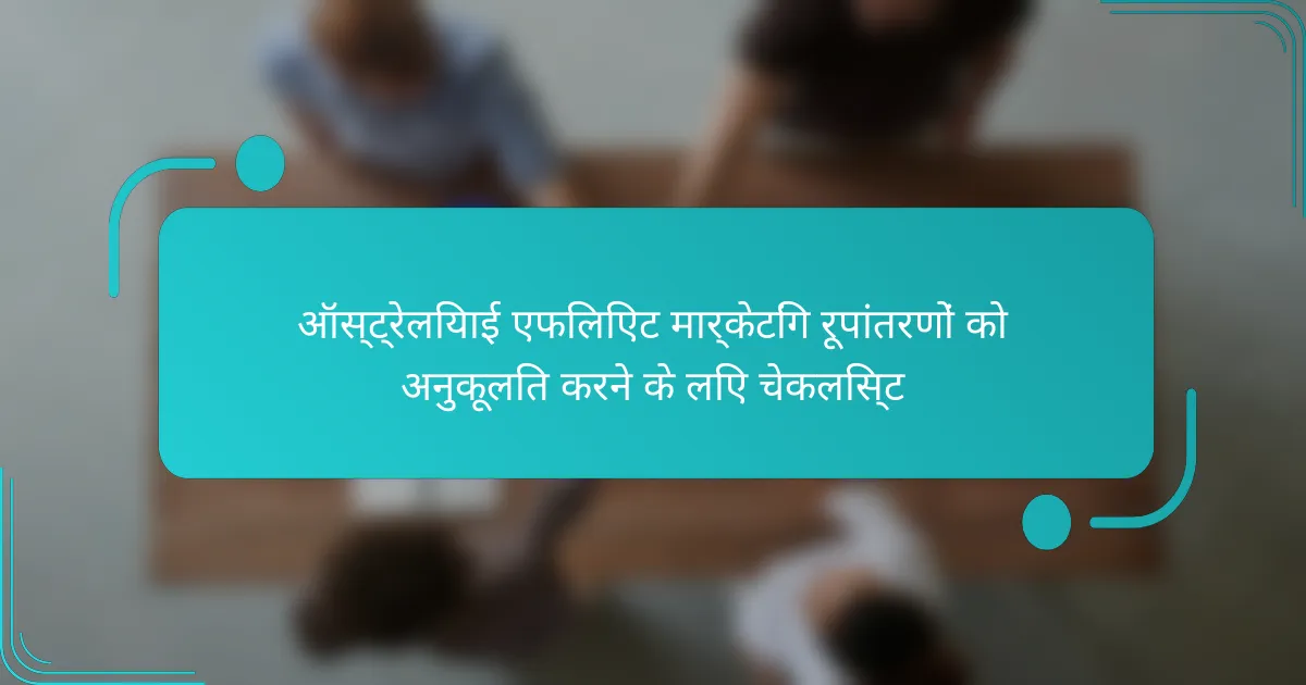 ऑस्ट्रेलिया में एफिलिएट मार्केटिंग रूपांतरणों का अनुकूलन स्थानीय दर्शकों और उनकी प्राथमिकताओं की गहरी समझ की आवश्यकता है। अपनी रणनीतियों को अनुकूलित करके, मूल्यवान सामग्री बनाकर, और स्थानीय संबंधों का लाभ उठाकर, आप सहभागिता बढ़ा सकते हैं और बिक्री को बढ़ावा दे सकते हैं। सही उपकरणों का उपयोग आपके प्रयासों को और अधिक सुव्यवस्थित कर सकता है और समग्र रूपांतरण दरों में सुधार कर सकता है।