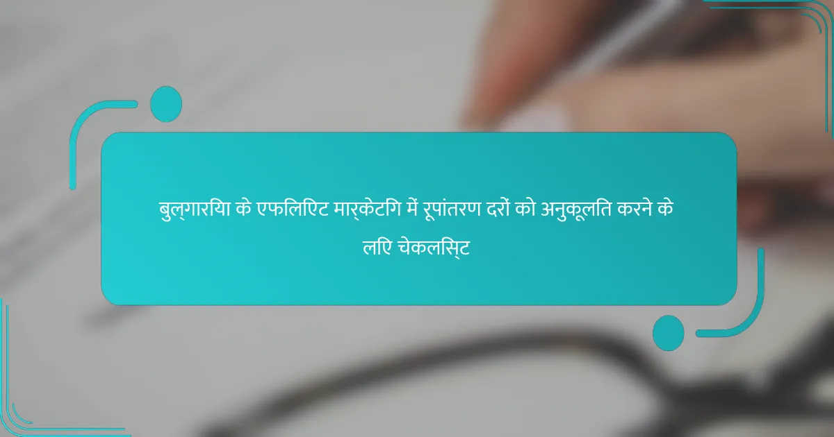 बुल्गारिया के सहयोगी विपणन में रूपांतरण दरों को बढ़ाने के लिए, अपने लैंडिंग पृष्ठों को अनुकूलित करने, A/B परीक्षण का उपयोग करने, कॉल-टू-एक्शन की दृश्यता को बढ़ाने और स्थानीय SEO रणनीतियों का लाभ उठाने पर ध्यान केंद्रित करें। ये रणनीतियाँ उपयोगकर्ता सहभागिता को महत्वपूर्ण रूप से सुधार सकती हैं और बिक्री को बढ़ा सकती हैं।