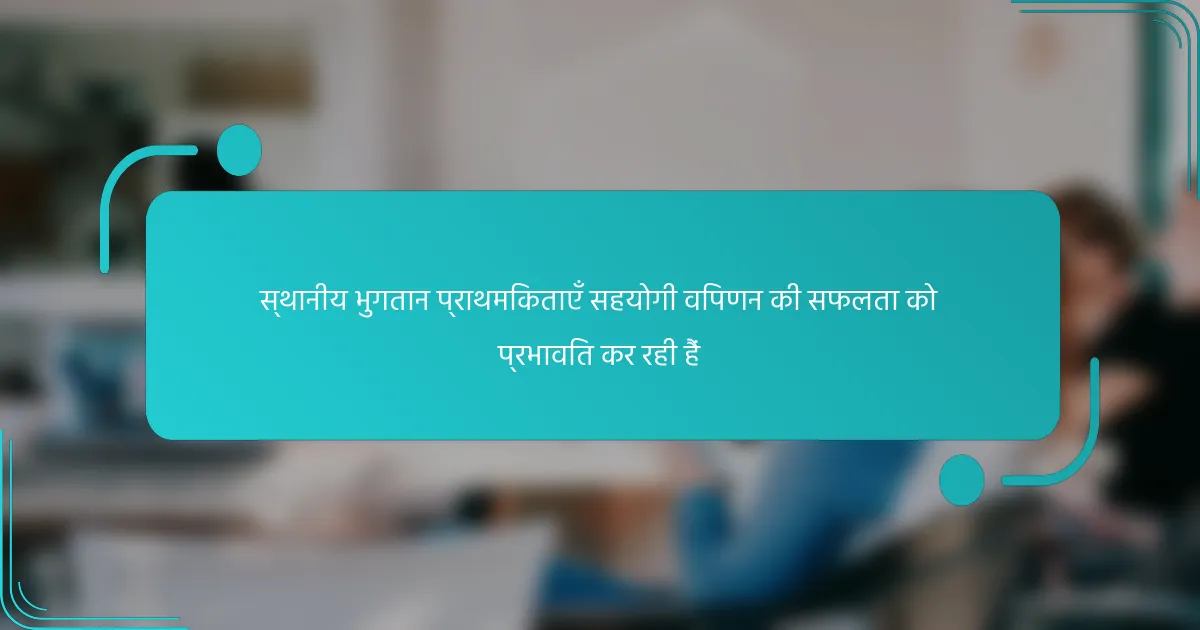 स्थानीय भुगतान प्राथमिकताएँ सहायक विपणन की सफलता में एक महत्वपूर्ण भूमिका निभाती हैं, क्योंकि ये उन भुगतान विधियों को आकार देती हैं जिनका उपयोग उपभोक्ता सबसे अधिक आराम से करते हैं। इन प्राथमिकताओं को समझकर, विपणक अपनी रणनीतियों को अनुकूलित कर सकते हैं ताकि रूपांतरण दरों और ग्राहक संतोष को बढ़ाया जा सके, जो अंततः अधिक प्रभावी अभियानों की ओर ले जाता है। क्षेत्रीय भुगतान प्रवृत्तियों के अनुसार अनुकूलन करना सहायक विपणन प्रयासों को अनुकूलित करने और उपभोक्ता आदतों के साथ संरेखण सुनिश्चित करने के लिए आवश्यक है।